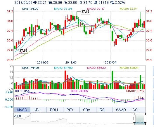 | 最 高: | 35.06 | 成交額: | 1.77億元 | 換手率: | 1.79% |