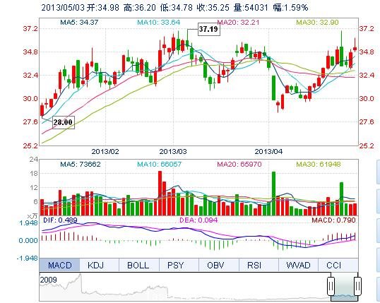 | 最 高: | 36.20 | 成交額: | 1.93億元 | 換手率: | 1.88% |