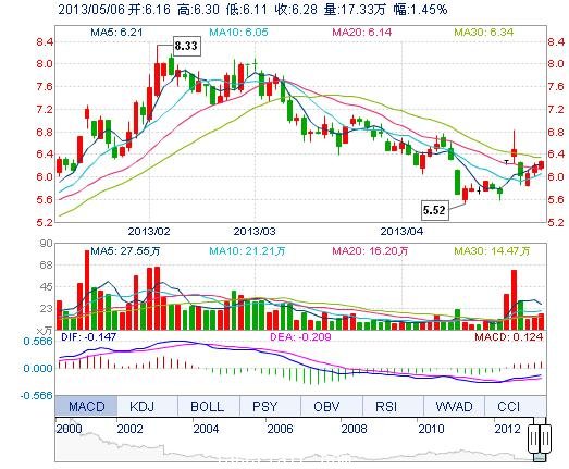 | 今 開: | 6.16 | 成交量: | 17.33萬手 | 振 幅: | 3.07% |