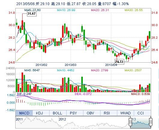 | 今 開: | 29.10 | 成交量: | 8707手 | 振 幅: | 4.33% |