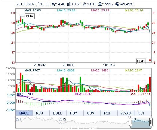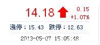 | 今 開: | 13.80 | 成交量: | 1.55萬手 | 振 幅: | 5.63% |
