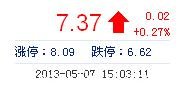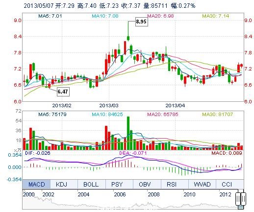 | 今 開: | 7.29 | 成交量: | 8.57萬手 | 振 幅: | 2.31% |