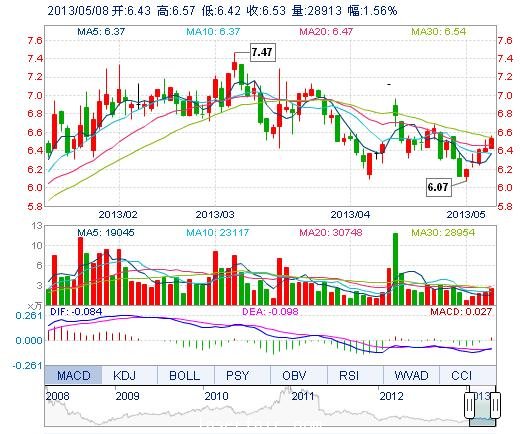 | 今 開: | 6.43 | 成交量: | 2.89萬手 | 振 幅: | 2.33% |