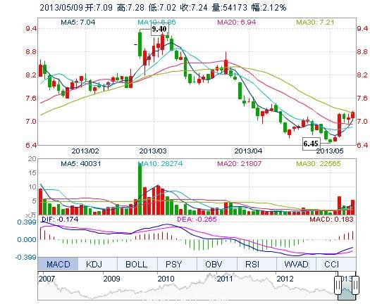 | 今 開: | 7.09 | 成交量: | 5.42萬手 | 振 幅: | 3.67% |