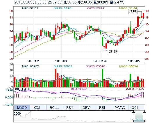 | 最 高: | 39.35 | 成交額: | 3.20億元 | 換手率: | 2.90% |