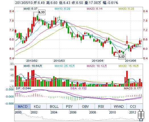 | 今 開: | 6.49 | 成交量: | 17.08萬手 | 振 幅: | 2.60% |