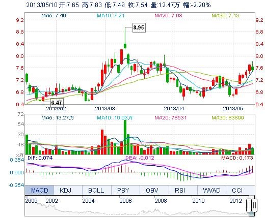 | 今 開: | 7.65 | 成交量: | 12.47萬手 | 振 幅: | 4.41% |
