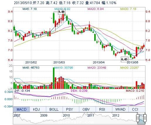 今開: 7.20 成交量: 4.18萬(wan) 手 振幅: 3.59% 最高: 7.42 成交額: 3049.24萬(wan) 元 換手率: 2.15% 最低: 7.16 總市值: 14.58億(yi) 市淨率: 3.01 昨收: 7.24 流通市值: ...