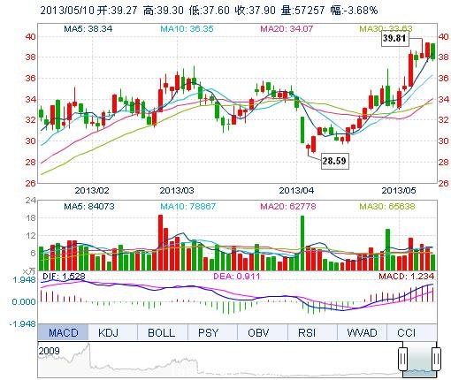 | 今 開: | 39.27 | 成交量: | 5.73萬(wan) 手 | 振 幅: | 4.32% |