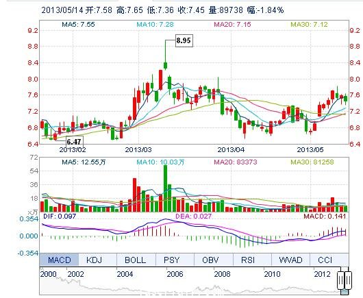 今開: 7.58 成交量: 8.97萬(wan) 手 振幅: 3.82% 最高: 7.65 成交額: 6678.56萬(wan) 元 換手率: 2.05% 最低: 7.36 總市值: 32.54億(yi) 市淨率: 2.32 昨收: 7.59 流通市值: ...