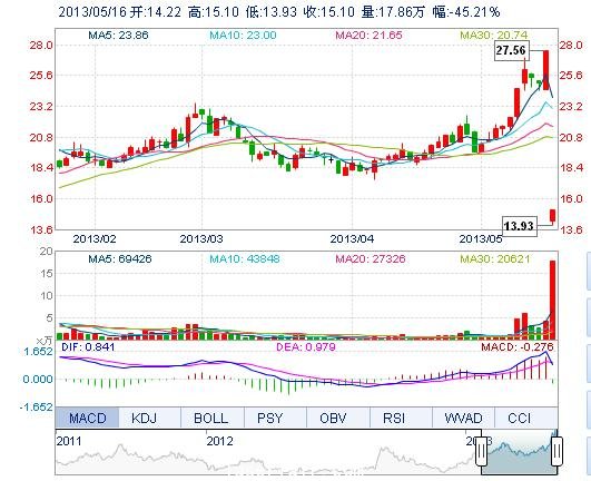 | 今 開: | 14.22 | 成交量: | 17.86萬手 | 振 幅: | 8.52% |