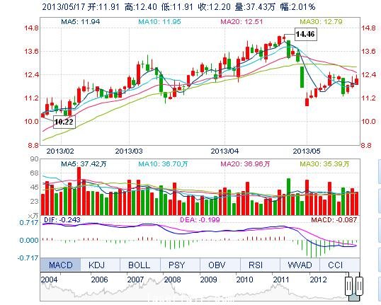 今開: 11.91 成交量: 37.43萬(wan) 手 振幅: 4.10% 最高: 12.40 成交額: 4.55億(yi) 元 換手率: 3.96% 最低: 11.91 總市值: 127.42億(yi) 市淨率: 3.68 昨收: 11.96 流通市值...