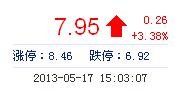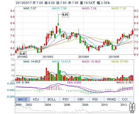 今開: 7.69 成交量: 18.54萬(wan) 手 振幅: 5.59% 最高: 8.08 成交額: 1.47億(yi) 元 換手率: 4.25% 最低: 7.65 總市值: 34.73億(yi) 市淨率: 2.48 昨收: 7.69 流通市值: 34...