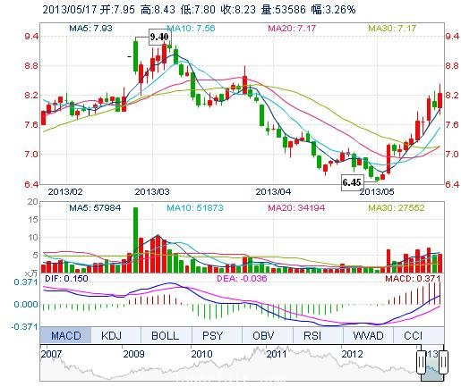 | 今 開: | 7.95 | 成交量: | 5.36萬手 | 振 幅: | 7.90% |