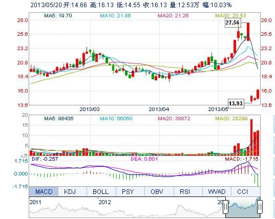 今開: 14.66 成交量: 12.53萬(wan) 手 振幅: 10.78% 最高: 16.13 成交額: 1.95億(yi) 元 換手率: 18.48% 最低: 14.55 總市值: 21.61億(yi) 市淨率: 3.38 昨收: 14.66 流通市...