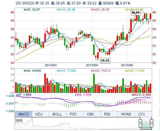 | 最 高: | 39.85 | 成交額: | 3.54億元 | 換手率: | 3.17% |