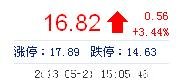 | 最 高: | 17.30 | 成交額: | 6898.44萬元 | 換手率: | 19.34% |