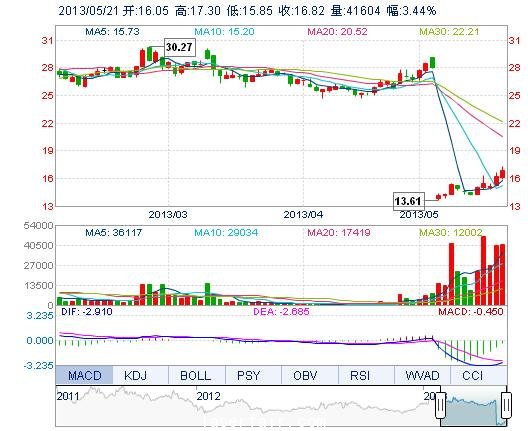 | 今 開: | 16.05 | 成交量: | 4.16萬手 | 振 幅: | 8.92% |