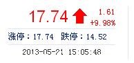 | 最 高: | 17.74 | 成交額: | 1.89億元 | 換手率: | 16.36% |
