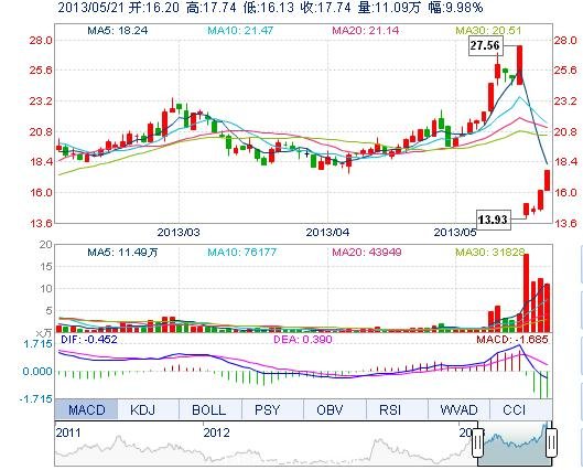 今開: 16.20 成交量: 11.09萬(wan) 手 振幅: 9.98% 最高: 17.74 成交額: 1.89億(yi) 元 換手率: 16.36% 最低: 16.13 總市值: 23.77億(yi) 市淨率: 3.71 昨收: 16.13 流通市值...