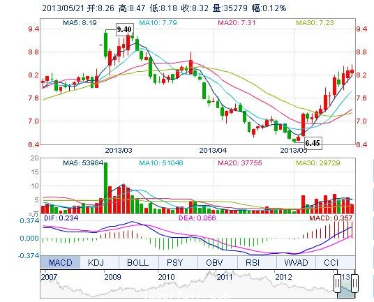 | 今 開: | 8.26 | 成交量: | 3.53萬手 | 振 幅: | 3.49% |