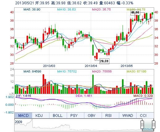 | 最 高: | 39.98 | 成交額: | 2.37億元 | 換手率: | 2.10% |