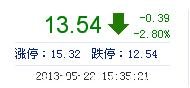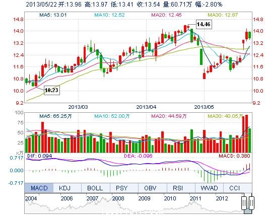 今開: 13.96 成交量: 60.71萬(wan) 手 振幅: 4.02% 最高: 13.97 成交額: 8.28億(yi) 元 換手率: 6.42% 最低: 13.41 總市值: 141.41億(yi) 市淨率: 4.08 昨收: 13.93 流通市值...