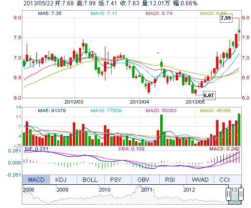 | 最 高: | 7.99 | 成交額: | 9226.20萬元 | 換手率: | 4.37% |