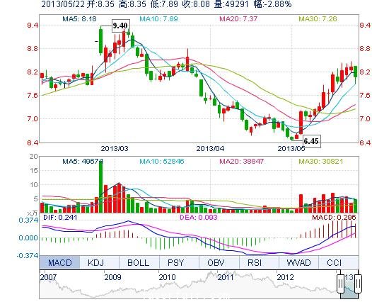 | 今 開: | 8.35 | 成交量: | 4.93萬手 | 振 幅: | 5.53% |