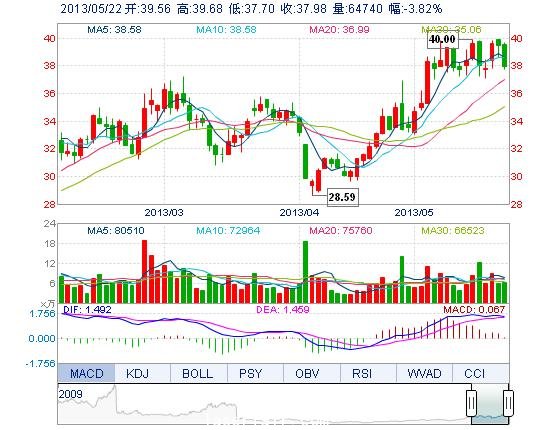 | 最 高: | 39.68 | 成交額: | 2.47億元 | 換手率: | 2.25% |