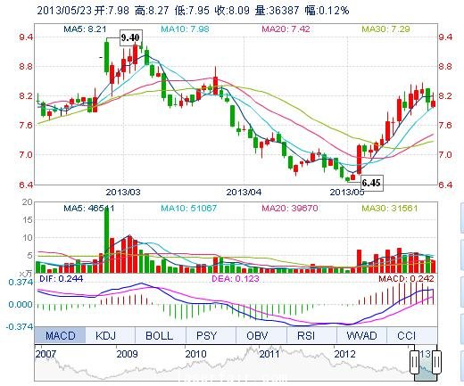 | 今 開: | 7.98 | 成交量: | 3.64萬手 | 振 幅: | 3.96% |