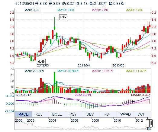 | 今 開: | 8.38 | 成交量: | 21.00萬手 | 振 幅: | 3.69% |