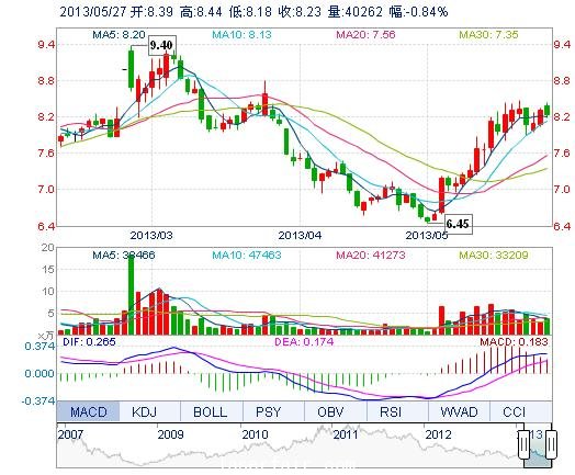 | 今 開: | 8.39 | 成交量: | 4.03萬手 | 振 幅: | 3.13% |