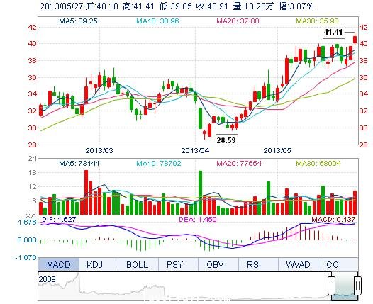 | 最 高: | 41.41 | 成交額: | 4.17億元 | 換手率: | 3.58% |
