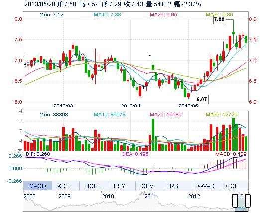 | 今 開: | 7.58 | 成交量: | 5.41萬手 | 振 幅: | 3.94% |