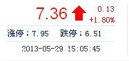 今開: 7.24 成交量: 21.79萬(wan) 手 振幅: 3.04% 最高: 7.42 成交額: 1.59億(yi) 元 換手率: 2.45% 最低: 7.20 總市值: 65.59億(yi) 市淨率: 2.50 昨收: 7.23 流通市值: 65...
