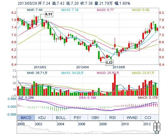 | 今 開: | 7.24 | 成交量: | 21.79萬手 | 振 幅: | 3.04% |
