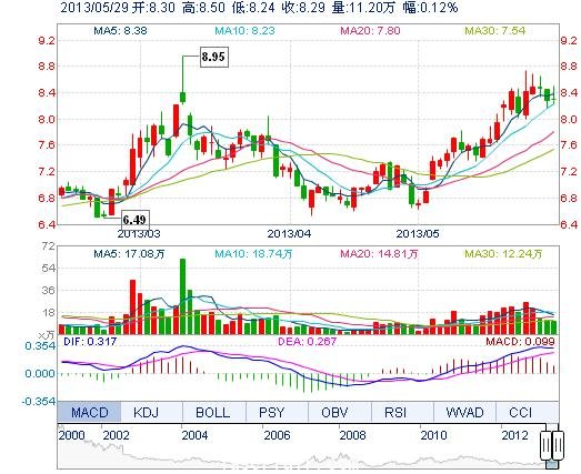 | 今 開: | 8.30 | 成交量: | 11.20萬手 | 振 幅: | 3.14% |