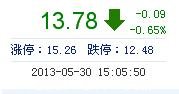| 昨 收: | 13.87 | 流通市值: | 130.25億 | 市盈率TTM: | 24.33 |