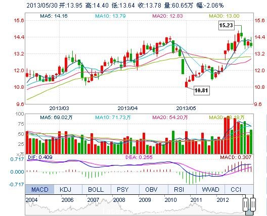 今開: 13.95 成交量: 60.65萬(wan) 手 振幅: 5.48% 最高: 14.40 成交額: 8.49億(yi) 元 換手率: 6.42% 最低: 13.64 總市值: 143.92億(yi) 市淨率: 4.15 昨收: 13.87 流通市值...