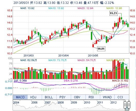 | 最 高: | 13.90 | 成交額: | 6.40億元 | 換手率: | 4.99% |