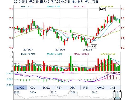 | 今 開: | 7.40 | 成交量: | 4.85萬手 | 振 幅: | 2.70% |