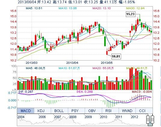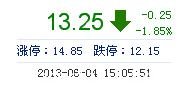 今開: 13.42 成交量: 41.13萬(wan) 手 振幅: 5.41% 最高: 13.74 成交額: 5.49億(yi) 元 換手率: 4.35% 最低: 13.01 總市值: 138.38億(yi) 市淨率: 3.99 昨收: 13.50 流通市值...