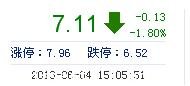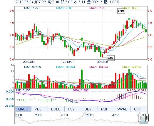 | 今 開: | 7.22 | 成交量: | 3.32萬手 | 振 幅: | 3.73% |