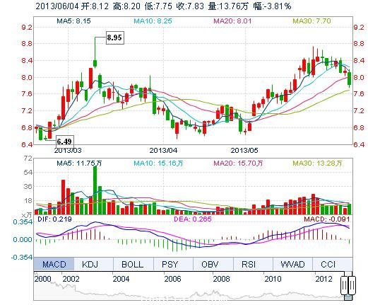 | 今 開: | 8.12 | 成交量: | 13.76萬手 | 振 幅: | 5.53% |