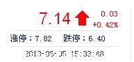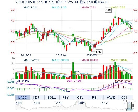 | 今 開: | 7.11 | 成交量: | 2.31萬手 | 振 幅: | 2.25% |