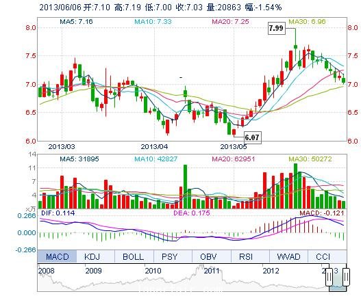 今開: 7.10 成交量: 2.09萬(wan) 手 振幅: 2.66% 最高: 7.19 成交額: 1482.44萬(wan) 元 換手率: 0.76% 最低: 7.00 總市值: 20.04億(yi) 市淨率: 3.18 昨收: 7.14 流通市值: ...