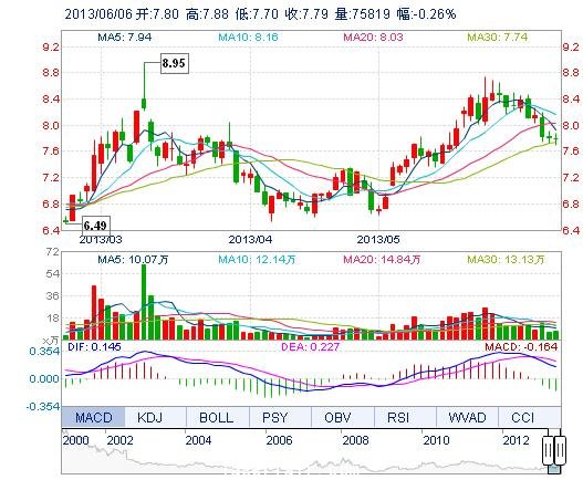 | 今 開: | 7.80 | 成交量: | 7.58萬手 | 振 幅: | 2.30% |