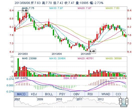 | 今 開: | 7.63 | 成交量: | 1.10萬手 | 振 幅: | 3.65% |