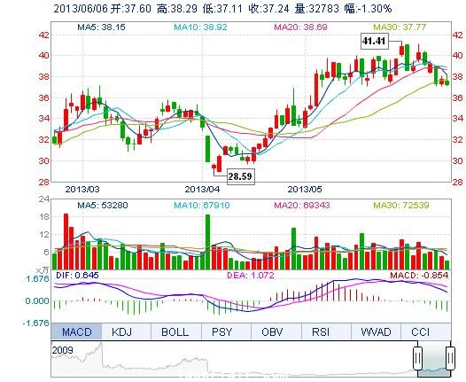 | 今 開: | 37.60 | 成交量: | 3.28萬手 | 振 幅: | 3.13% |